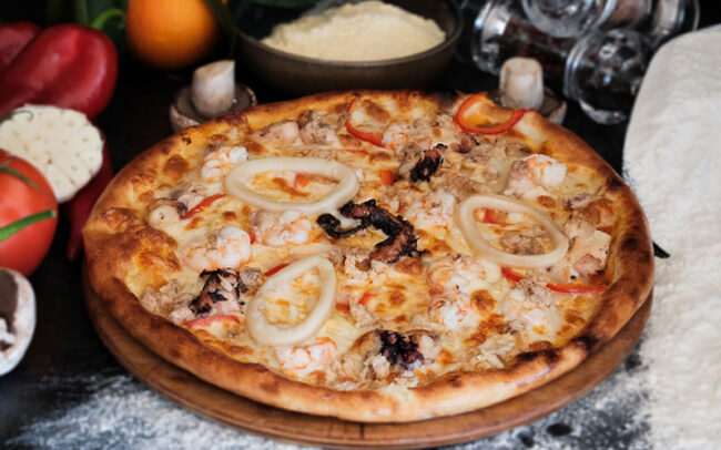 Tuna, shrimps, onions, octopus, calamari and capia