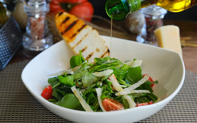 Seasonal greens, beet root, green apple, pomagranate, curd cheese and black cumin